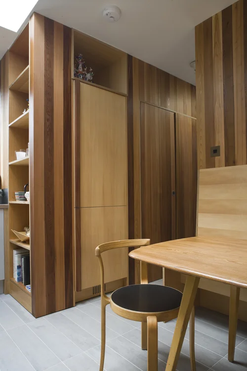 S54A were asked to design the upgrading of the ground floor of a large family house in Aberdeen Park in Islington. The existing kitchen was dark and badly planned with an inadequate dining area and no Utility room. The Living room was disconnected from the dining area and the cloakroom was small and badly located. All the main living areas face north and were elevated above a large garden, but took little advantage of the space or the views.